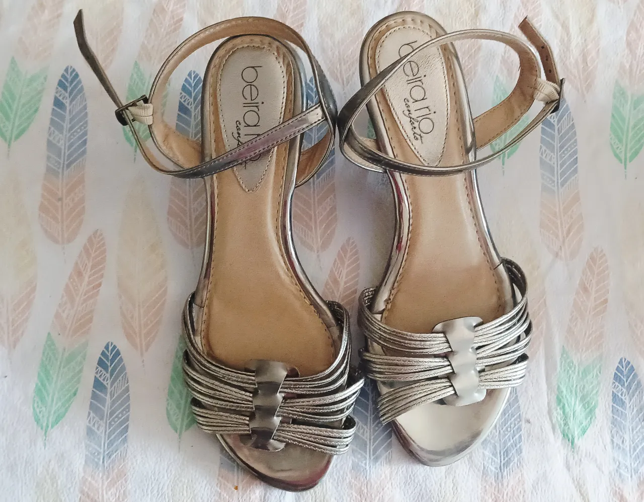 Sandalias plateadas con tiras finas y taco. Ideales para un look elegante y sofisticado.