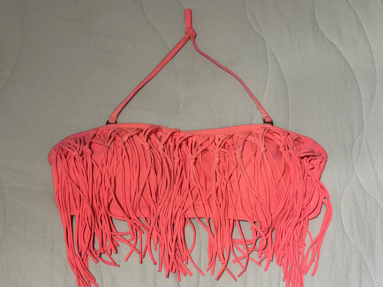 ¡Top de bikini súper canchero con flecos! Ideal para lucirte en la playa o la pileta con mucho estilo. Su diseño vibrante y moderno te hará destacar.