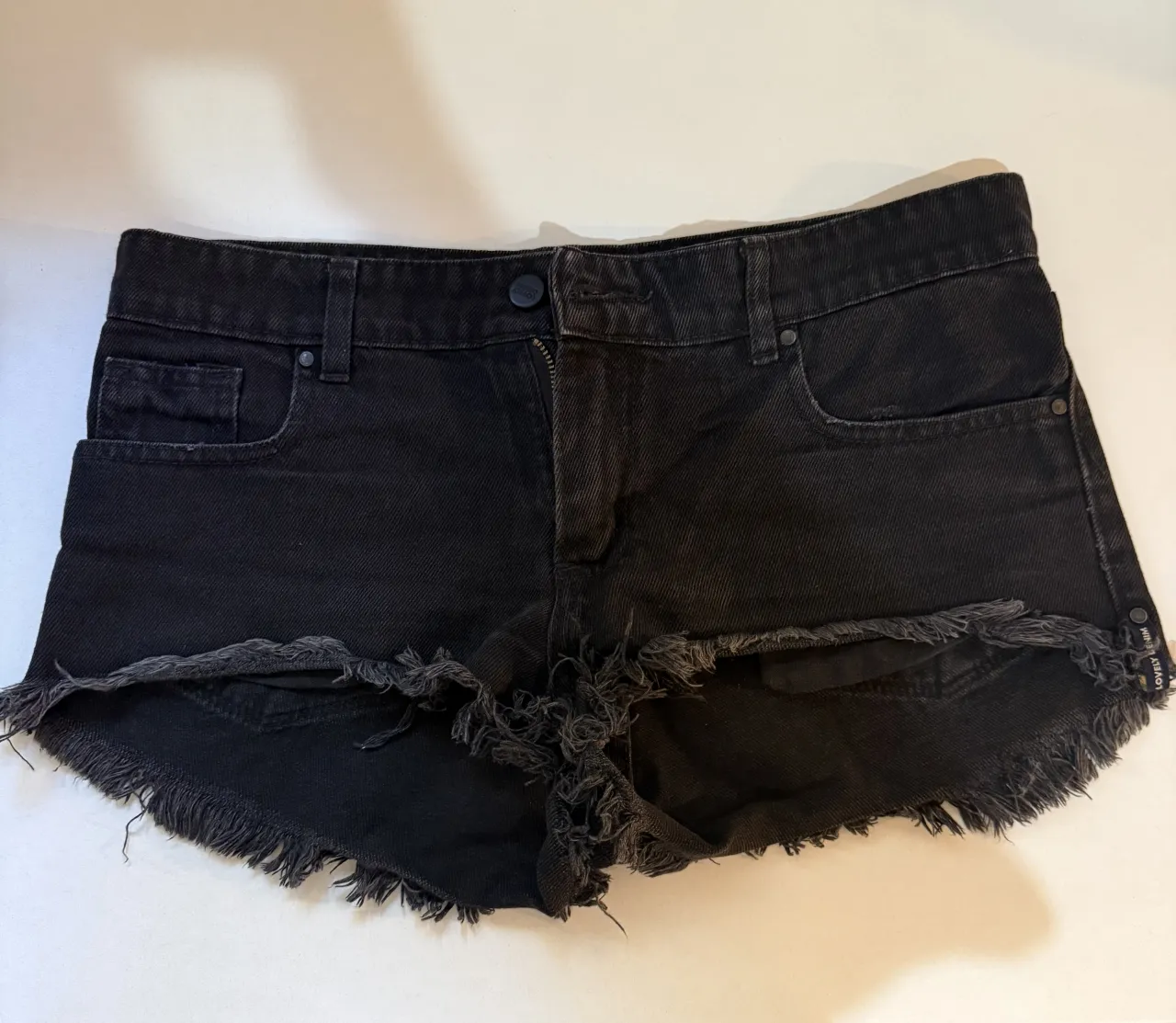 Shorts de jean negros con roturas y desflecados . Un clásico para el verano, perfectos para un look casual y descontracturado.