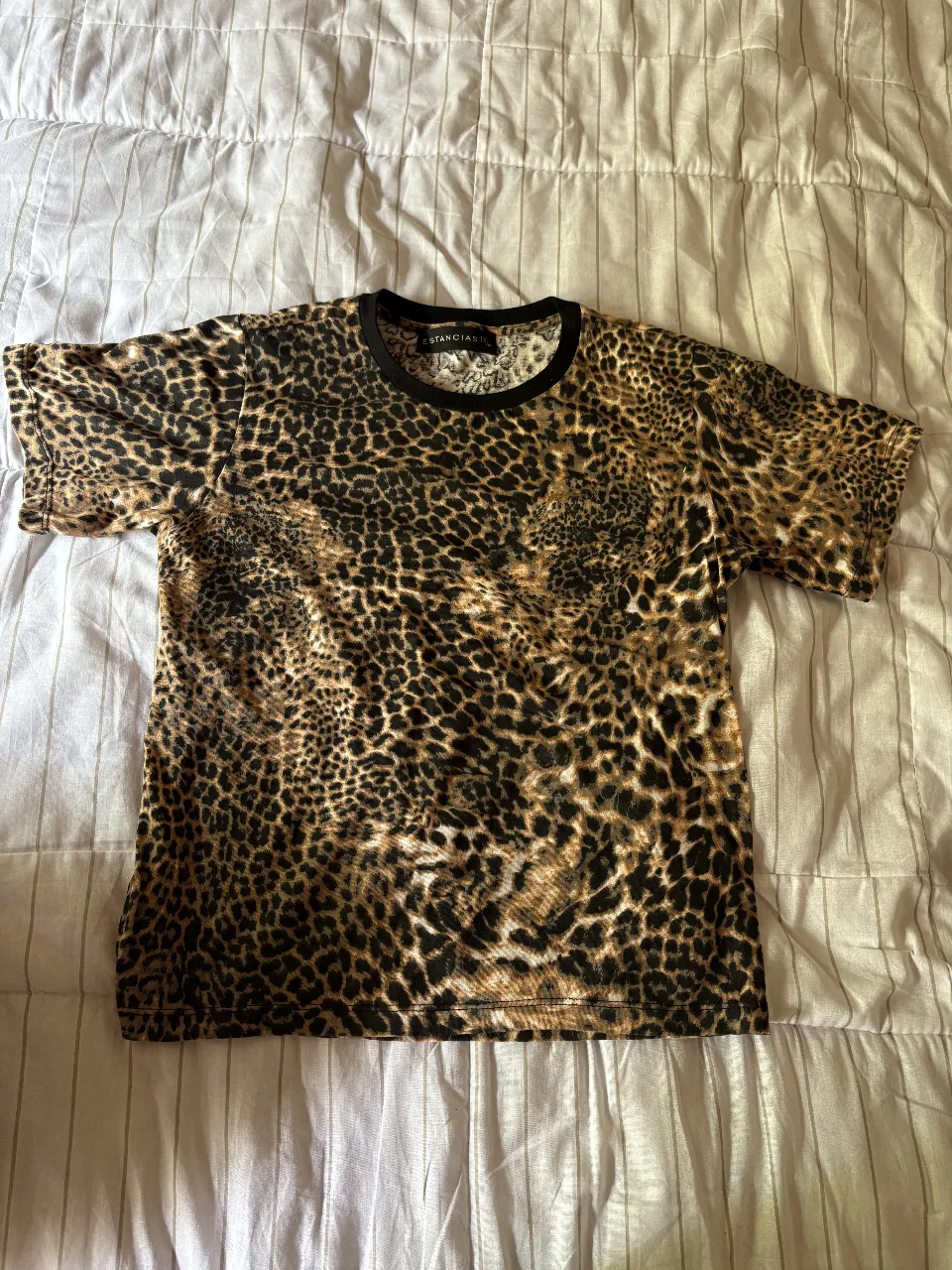 Remera de manga corta con estampa animal print de leopardo. Diseño llamativo y moderno.