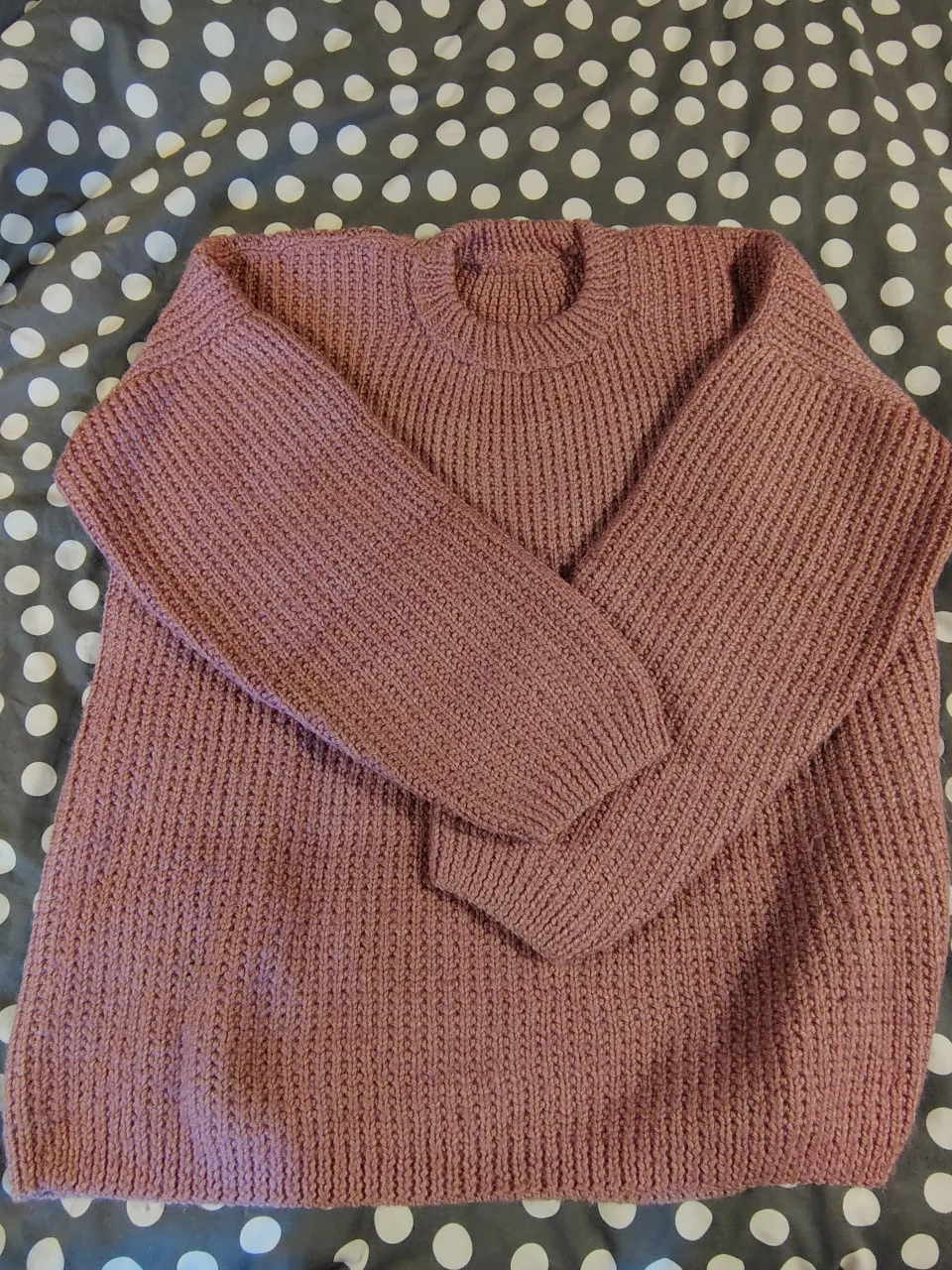Sweater tejido de lana en color rosa pálido. Posee cuello redondo y mangas largas. Ideal para un look casual y cómodo.