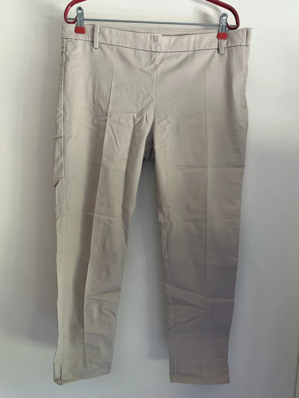 Pantalón de vestir color crudo, tiro alto y cierre de costado. Ideal para un look elegante y moderno.