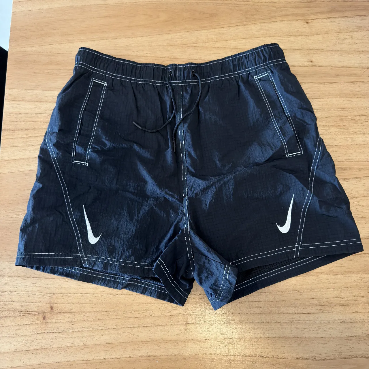 Shorts deportivos Nike negros, ideales para entrenar o para un look casual y cómodo. Cuentan con el logo de Nike en blanco y detalles de costura que le dan un toque moderno. Perfectos para el día a día o para actividades al aire libre.
