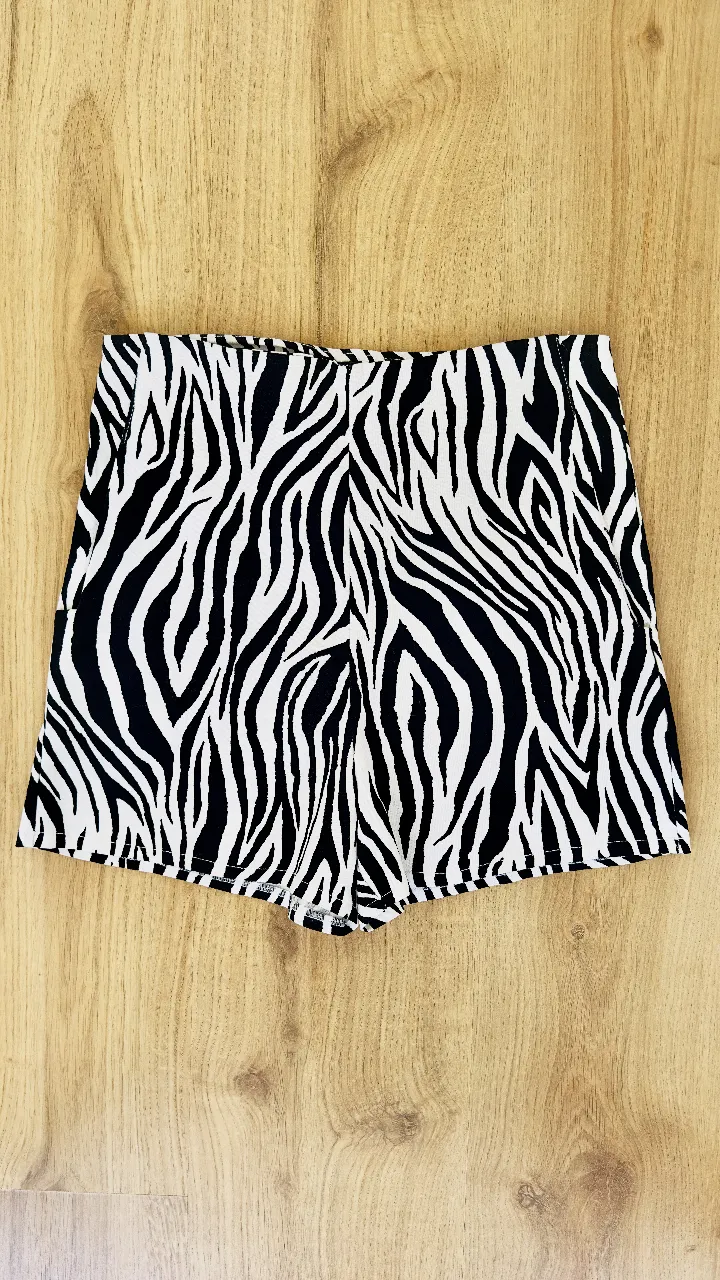 Shorts de gabardina elastizada con estampa de cebra, tiro alto y corte moderno. Ideales para un look canchero y divertido. Se adapta muy bien a distintos talles de jean: 36-38-40.