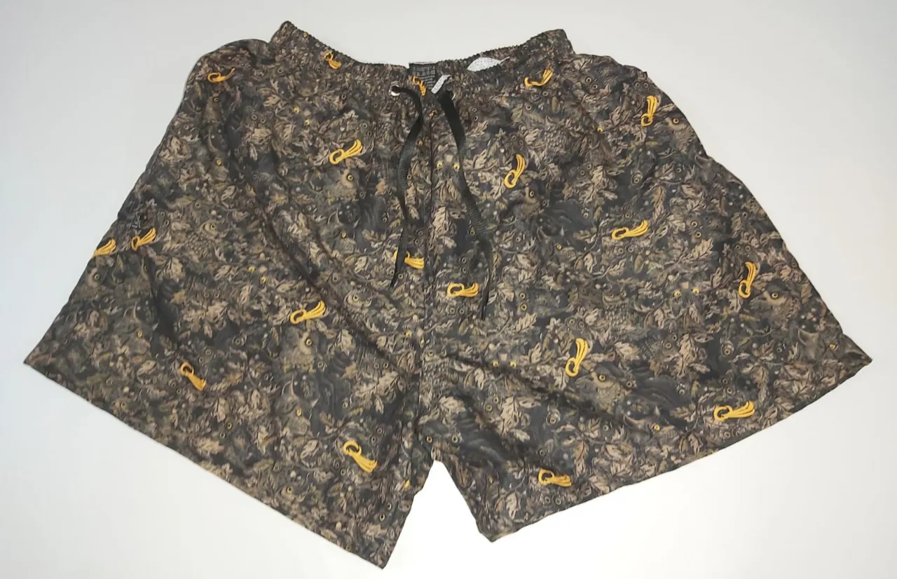 Malla hombre con un estampado abstracto y vibrante en tonos tierra y negro. Tienen un cordón ajustable en la cintura para mayor comodidad y un diseño moderno. 32 cm cintura. 31 cm tiro. 43 cm largo pierna 38 cm ancho pierna