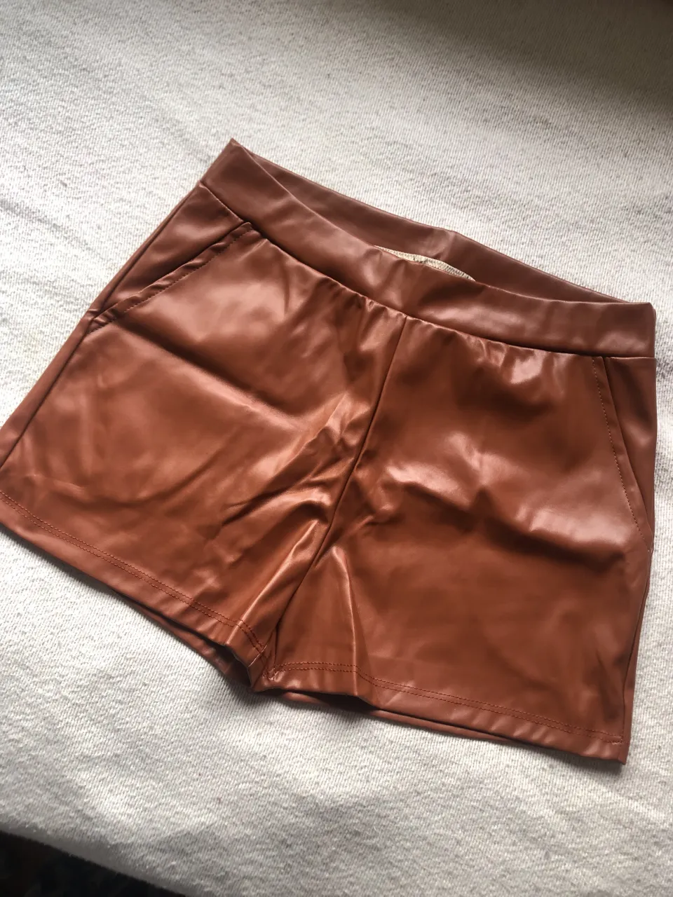 Short engomado color marrón con bolsillos delanteros.