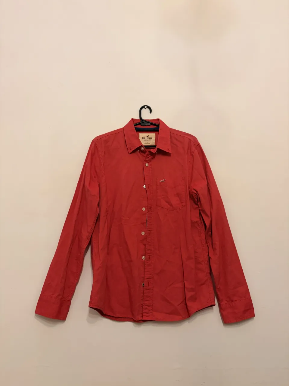 Camisa Hollister de manga larga color rojo, ideal para un look casual y moderno. Perfecta para combinar con jeans o pantalones de vestir.