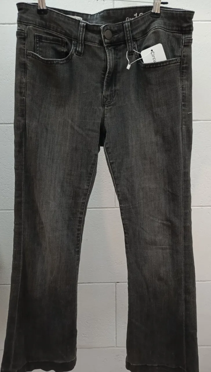 Jean de mujer color gris oscuro, con bolsillos delanteros y traseros.
