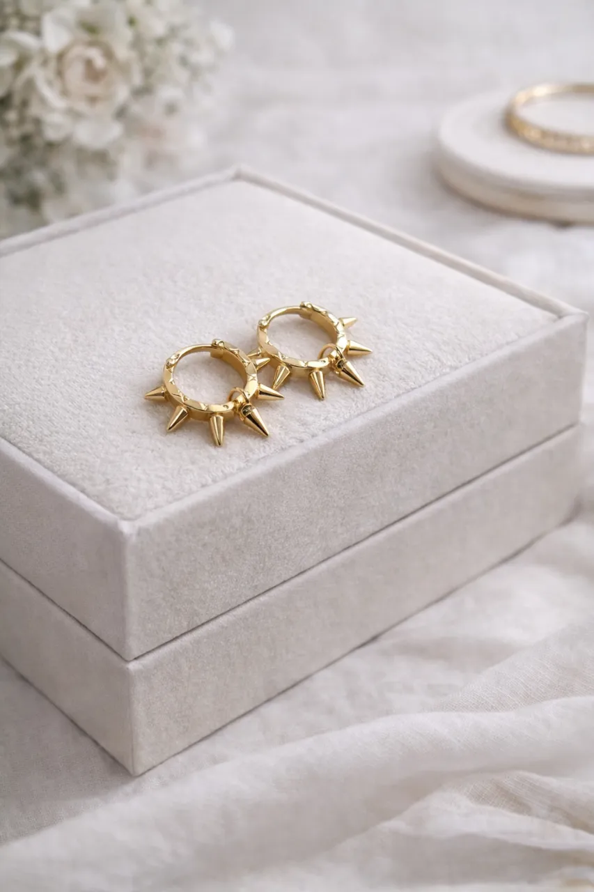 Aros argolla enchapados en oro 18k con diseño de púas. Un toque audaz y moderno para elevar cualquier look.