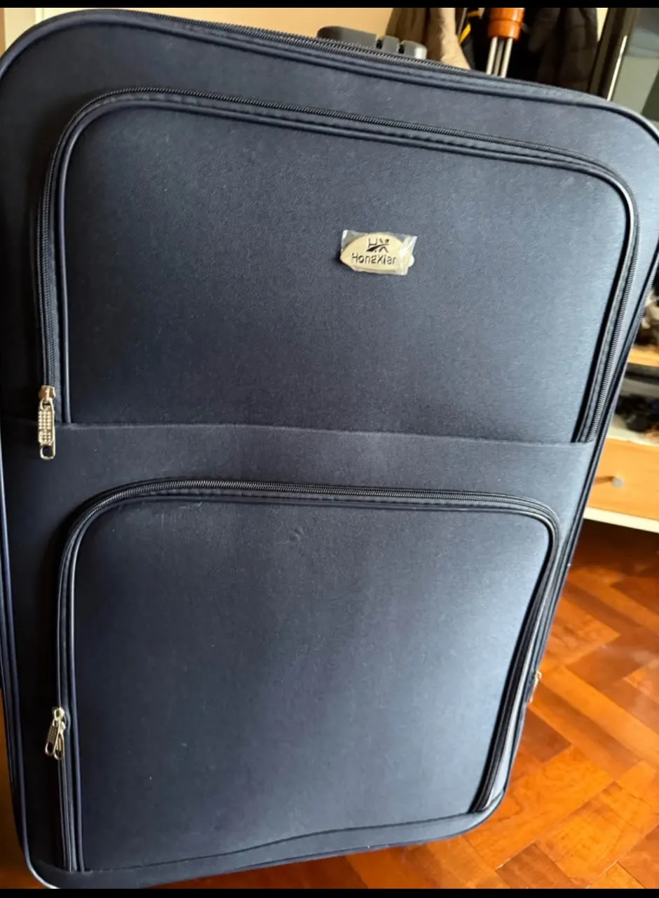 Valija de viaje grande, color azul marino. Ideal para llevar todo lo necesario en tus vacaciones o viajes largos. Cuenta con múltiples compartimentos para organizar tus pertenencias y un diseño clásico y funcional.