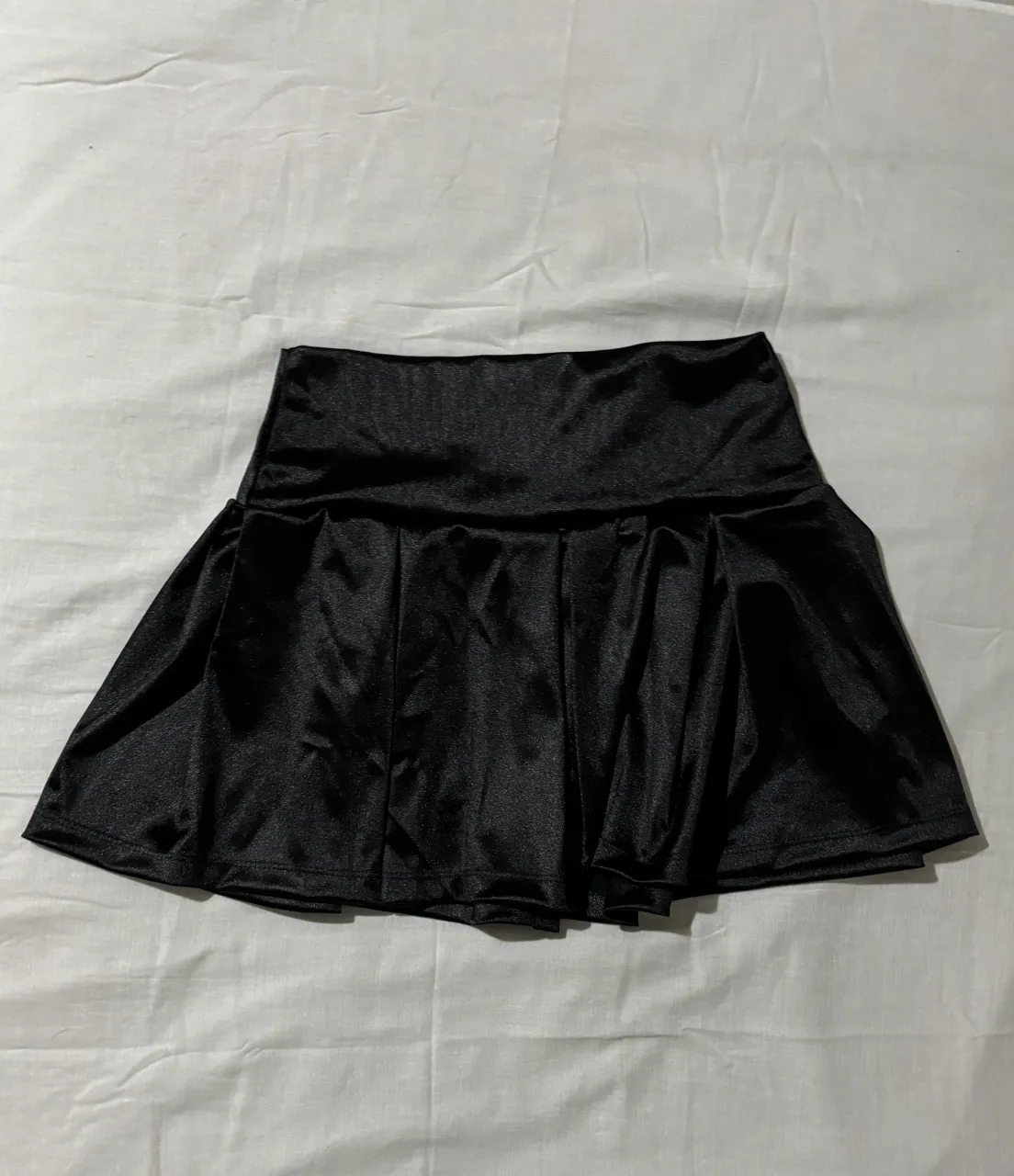 Pollera negra corta, con tablas y tiro bajo.
