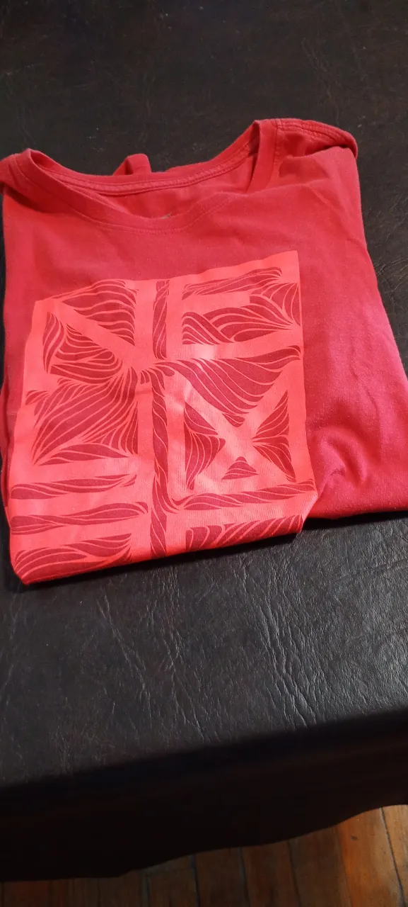 Remera roja de manga corta con un estampado geométrico en el frente. Ideal para el día a día o para entrenar.