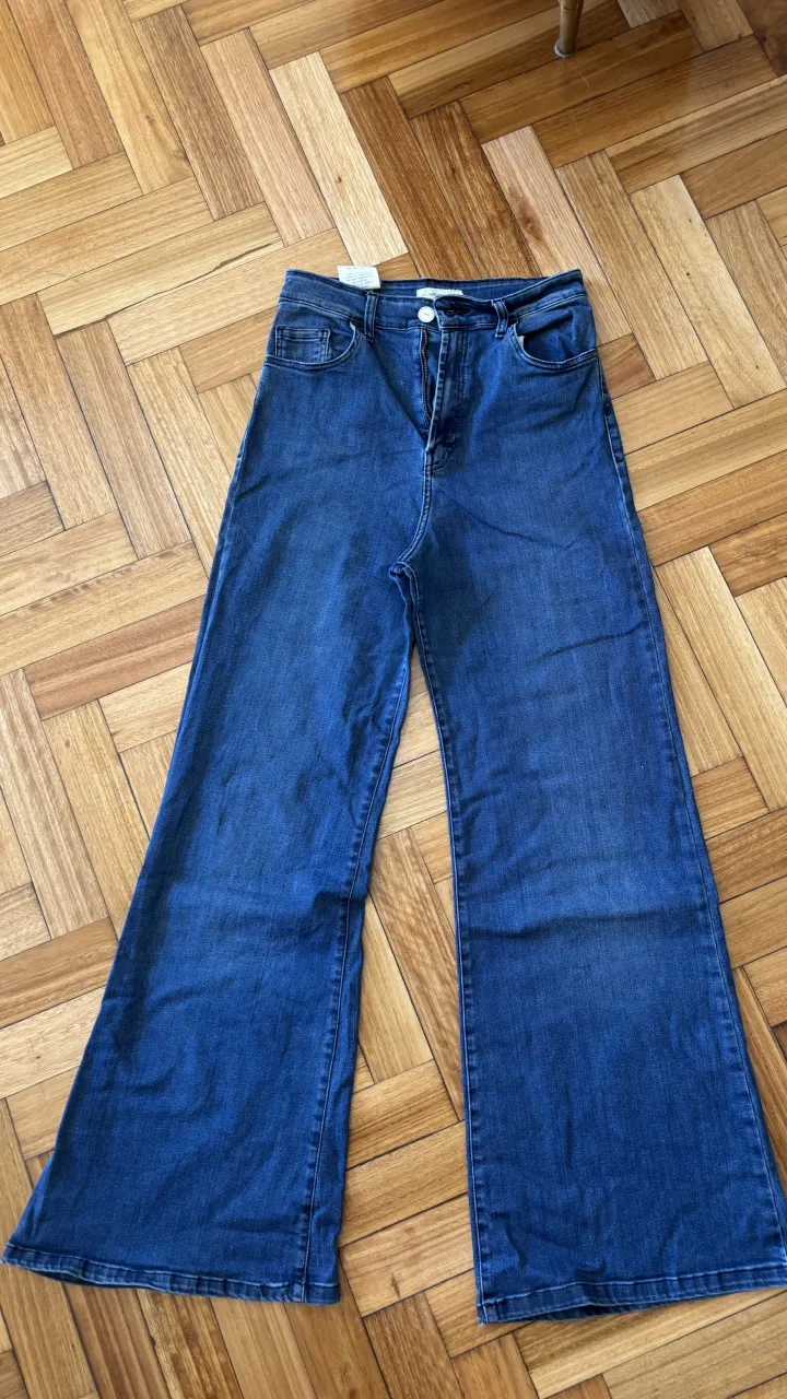 Jeans tiro alto, corte wide leg, color azul clásico. Básicos , muy comodos y elastizados.
