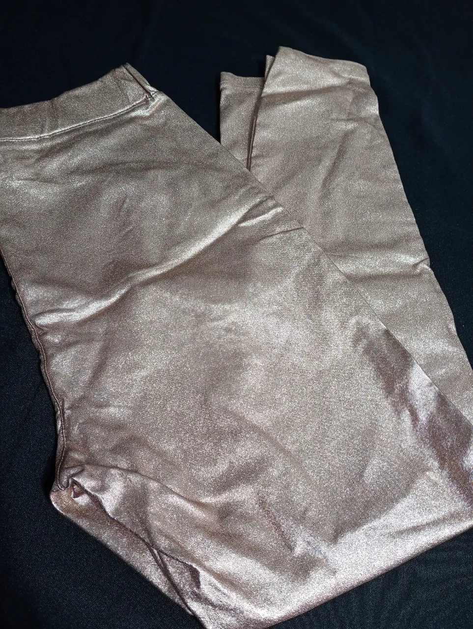 Pantalón de mujer Kendall, color rosa gold metalizado, talle L, ideal para un look moderno y audaz. Perfecto para destacar en cualquier ocasión.