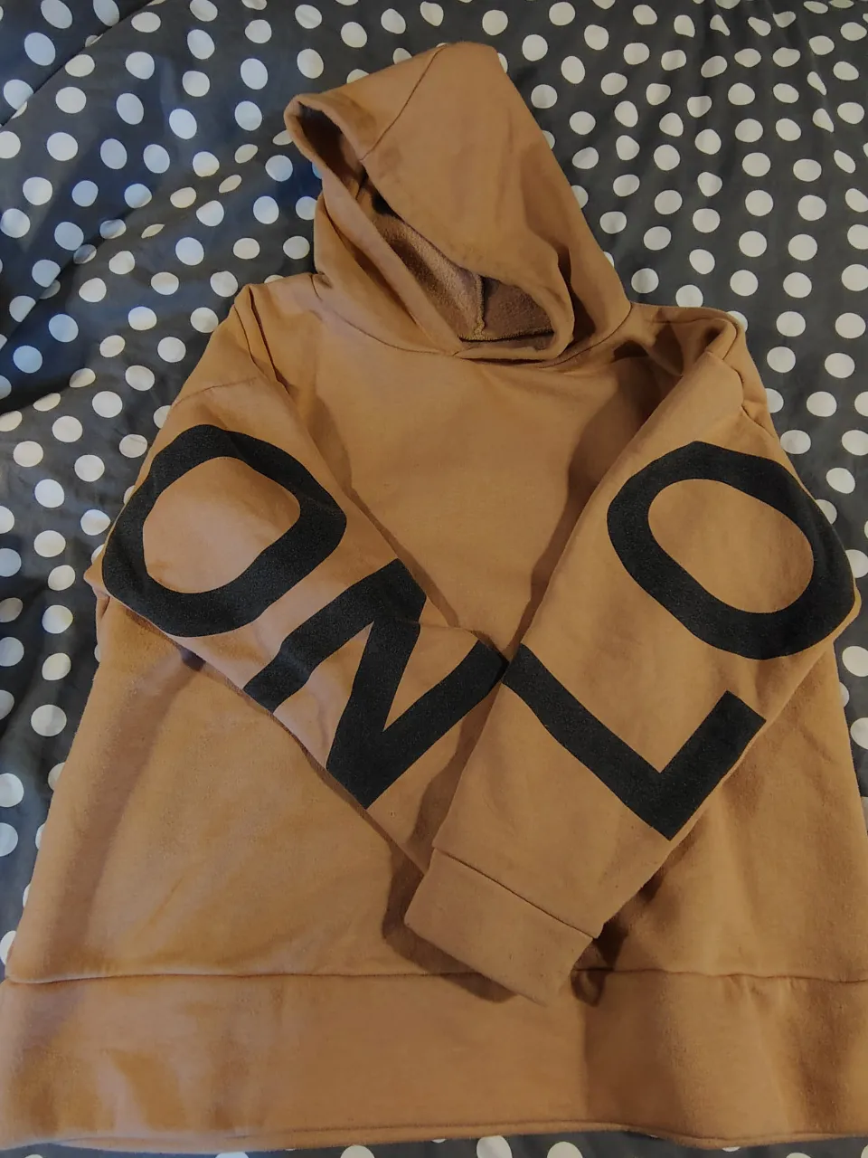 Buzo canguro color beige con capucha y estampa "LONDON ORIGINAL LIFE" en mangas y espalda. Ideal para un look urbano y canchero.
