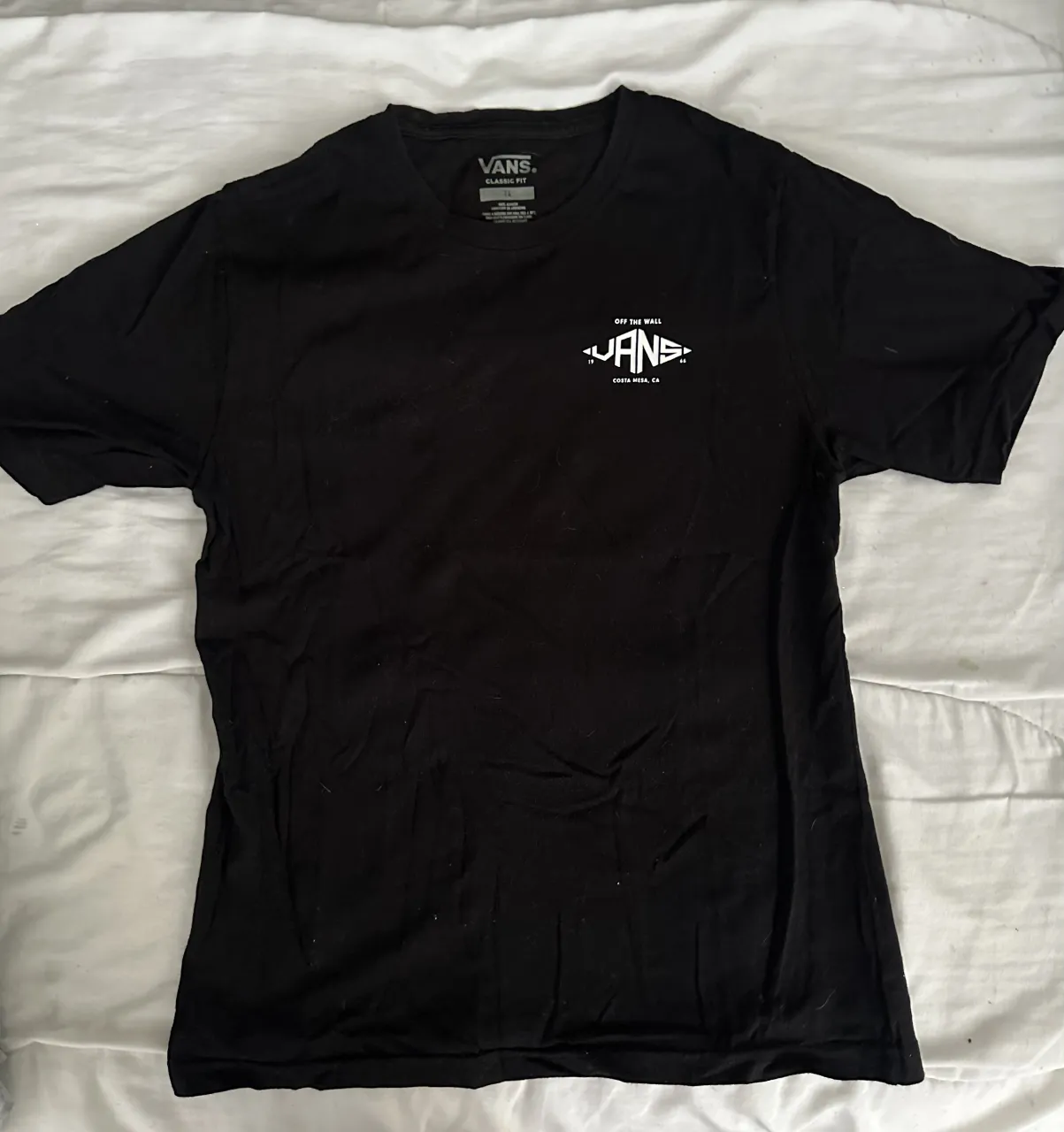 Remera negra de Vans, con estampa "Off The Wall" en el frente y espalda. Ideal para un look casual y urbano.