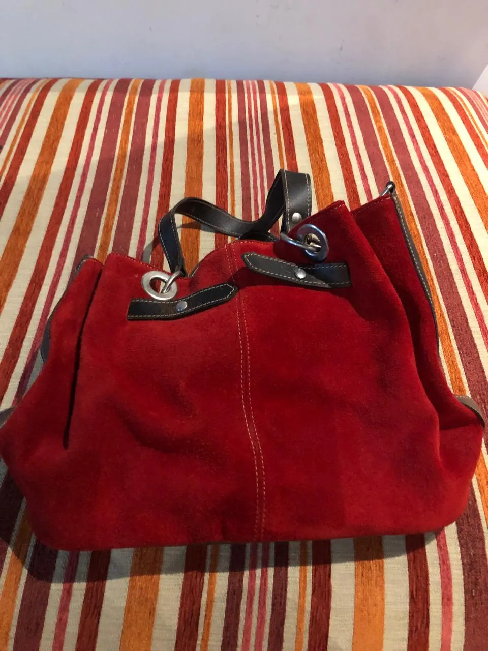 Bolso de cuero rojo, ideal para el día a día o para darle un toque de color a tu outfit. Su diseño espacioso y cierre seguro lo hacen perfecto para llevar todo lo que necesitás. ¡Un clásico que no puede faltar en tu colección!