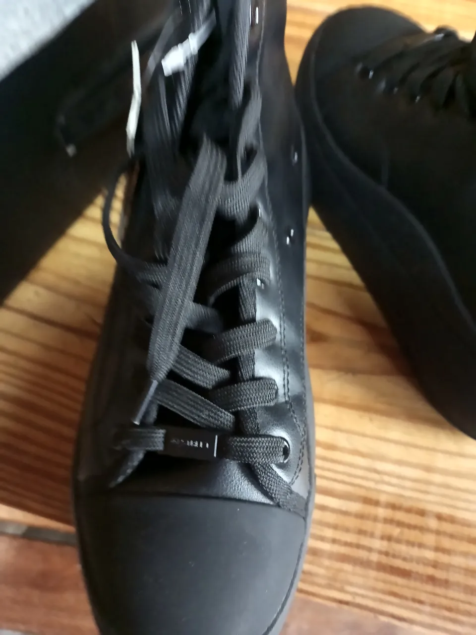Zapatillas urbanas de caña alta, color negro, con cordones y suela de goma.