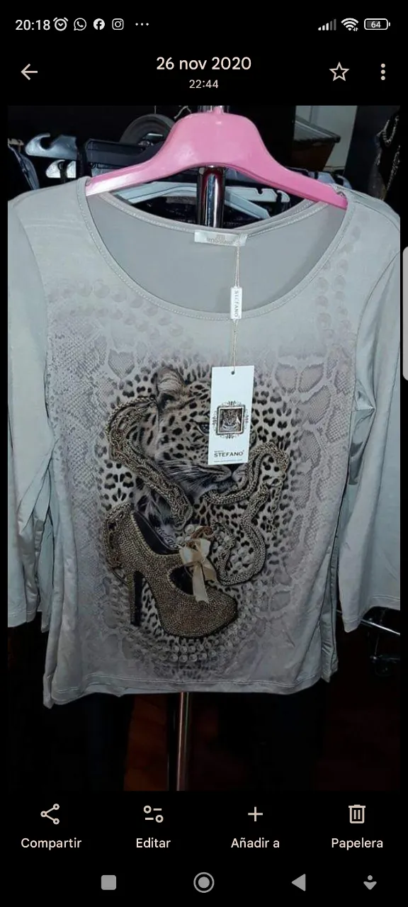 Remera manga larga con estampa de leopardo, tacón y serpiente. Ideal talla S/M. Diseño único y llamativo confeccionado en Turquía.