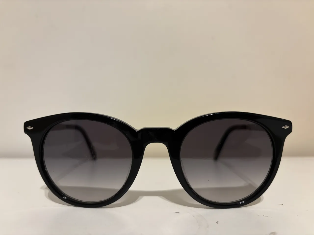 Lentes de sol negros con marco redondo y cristales degradé. Un accesorio clásico y versátil para protegerte del sol con estilo.