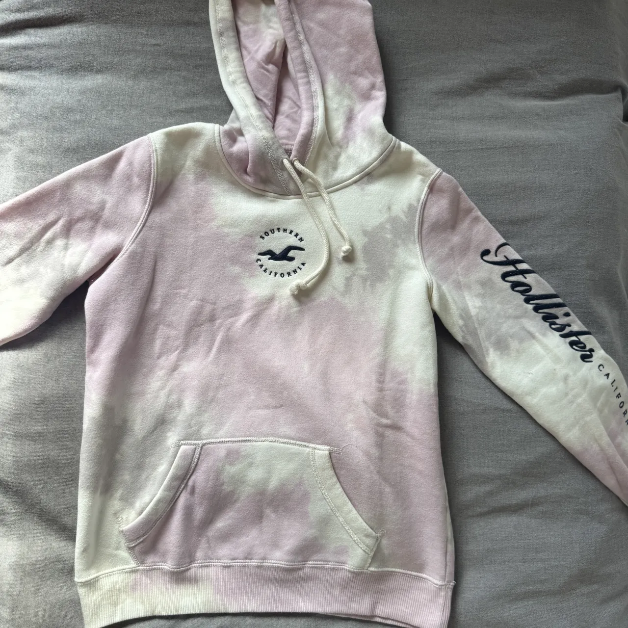 Hoodie con estampa tie-dye en tonos pastel, ideal para un look casual y relajado. Tiene bolsillo canguro y capucha con cordones. Perfecta para el día a día.