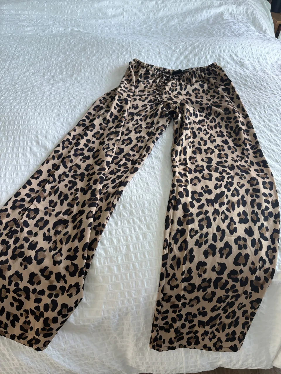 Pantalón ancho, suelto y un poco tiro alto animal print. Súper cómodo y canchero, ideal para un look relajado pero con onda.