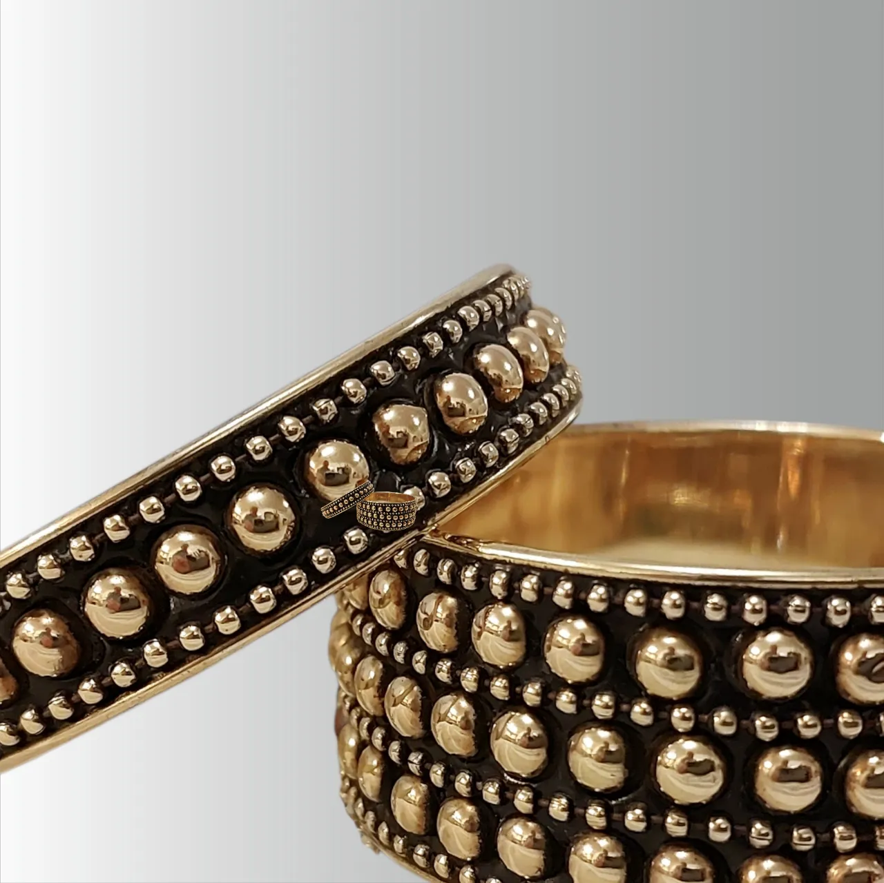 Set de 2 pulseras doradas con diseño de bolitas y detalles en negro. Un accesorio ideal para darle un toque chic a tu look.