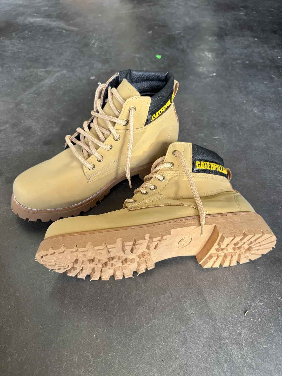 Botas de cuero estilo Caterpillar, color suela. Perfectas para un look urbano y resistente. Ideales para el día a día o para actividades al aire libre.