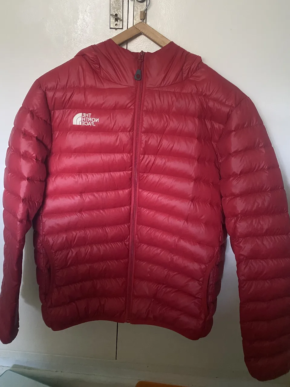 Campera de plumas súper liviana y abrigada, ideal para el frío. Tiene capucha y cierre completo. Perfecta para usar en la ciudad o en actividades al aire libre. Marca The North Face, talle XL.