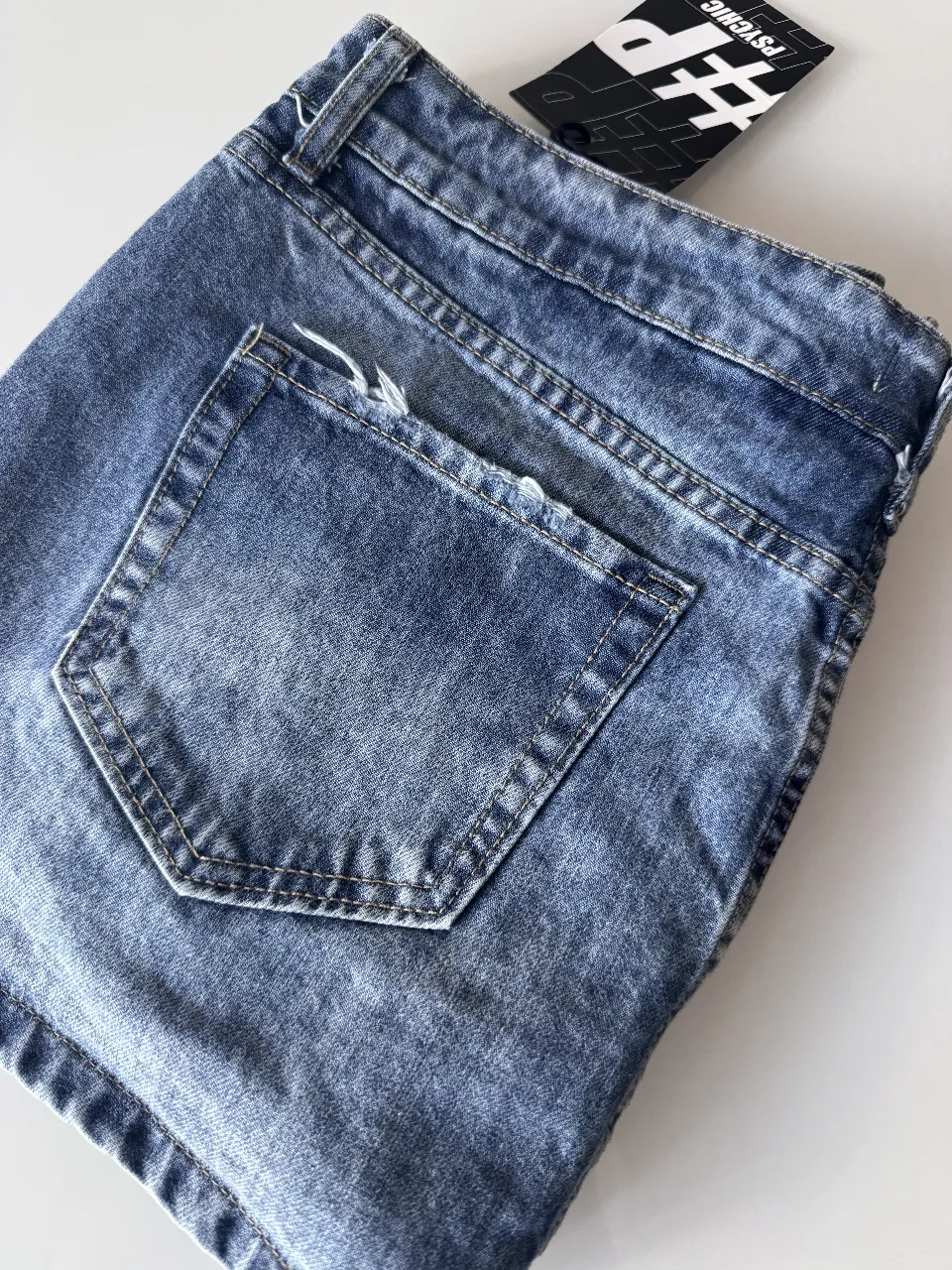Pollera de jean tiro medio, con short incluido y con un lavado desgastado súper canchero. Perfectos para un look casual de verano o para salir con amigas.