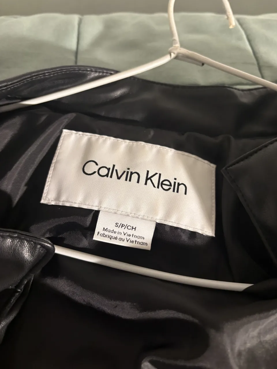 Campera de cuero negra, estilo bomber, con cierre y cuello redondo. Ideal para un look urbano y moderno.