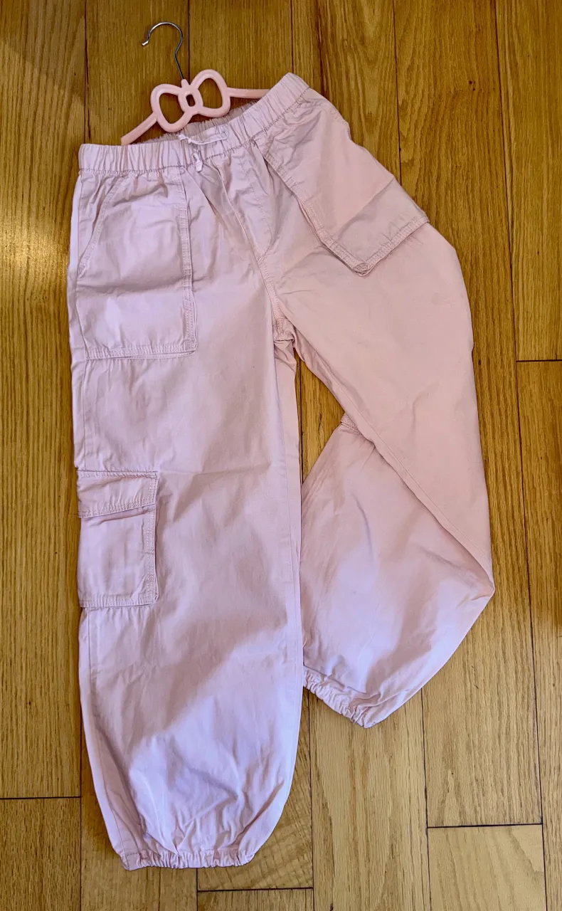 Pantalón babucha tipo cargo, súper cómodo y canchero. Tiene bolsillos amplios y ajuste con elástico y cordón en la cintura. color rosa bebé.