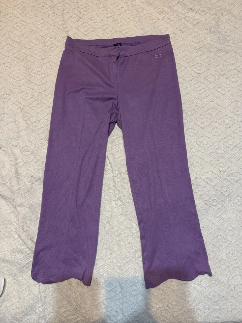 Pantalón liso de color violeta. Posee un pequeño logo bordado en la parte superior derecha del frente.