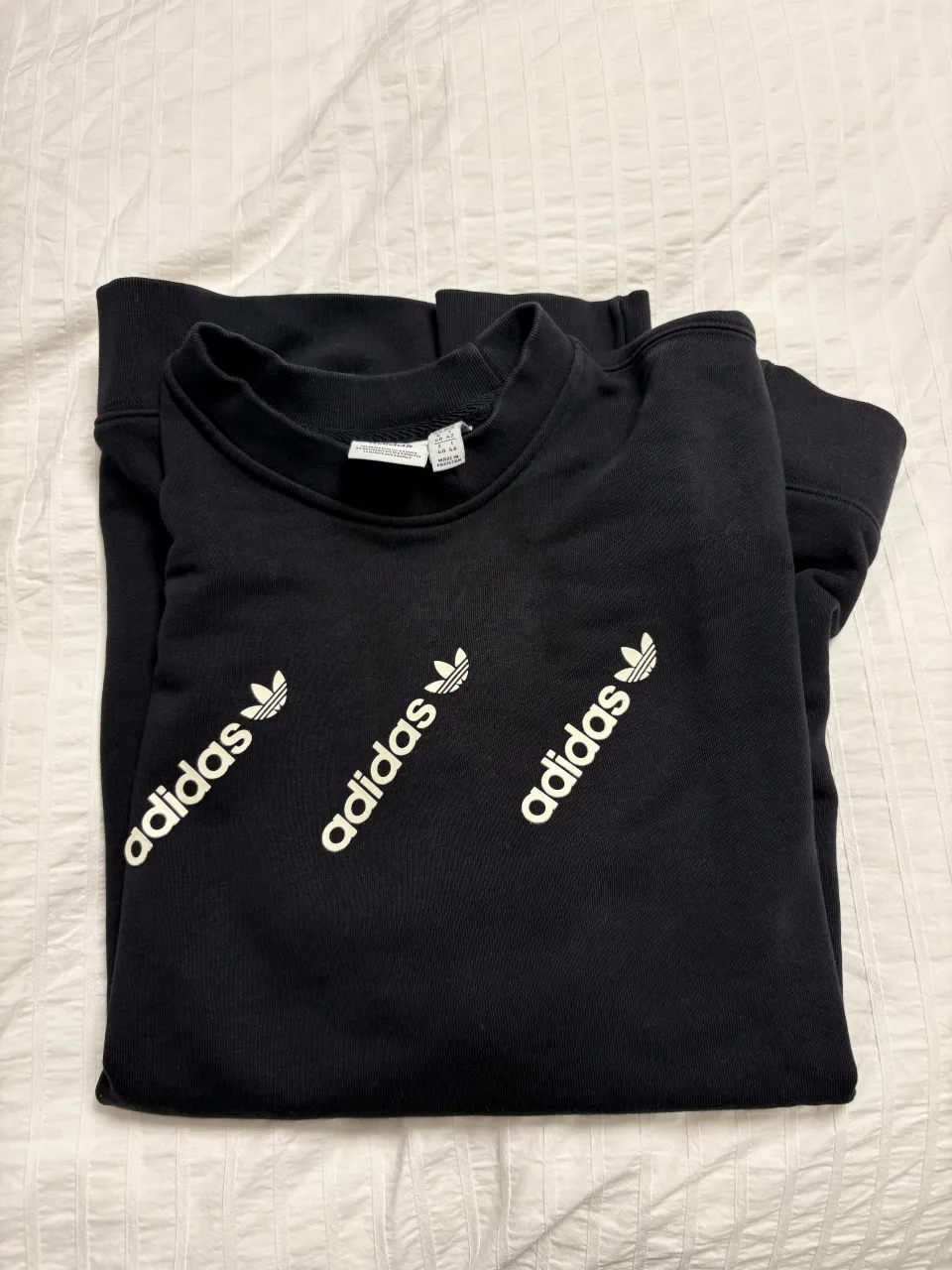 Buzo de algodón negro con tres estampas del logo de Adidas en blanco. Ideal para un look casual y deportivo.