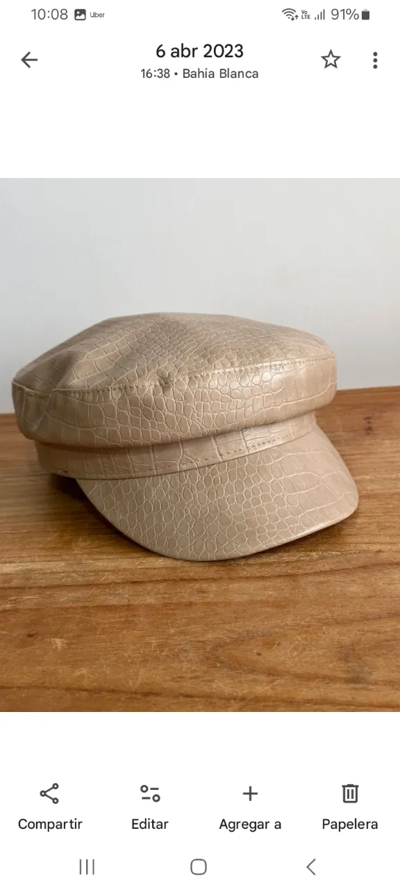Gorra estilo boina de cuero sintético con textura de cocodrilo. Un accesorio chic y moderno para elevar cualquier look.
