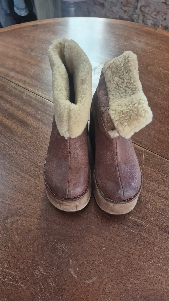 Botas de cuero marrón con plataforma y detalle de piel en la caña. Ideales para un look invernal y cómodo.