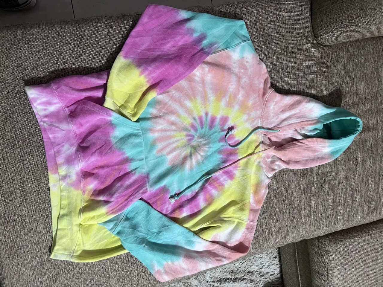 Buzo con capucha y cordones de ajuste. Estampado tie-dye multicolor.