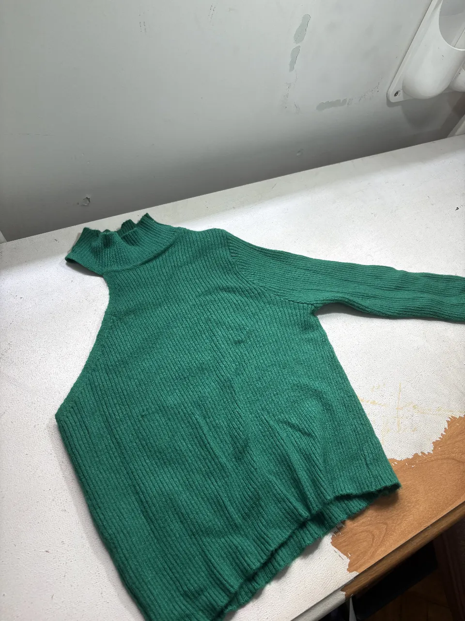 Sweater de lana tejido en color verde esmeralda. Posee cuello alto con terminación acampanada y mangas largas. Ideal para un look canchero y abrigado.
