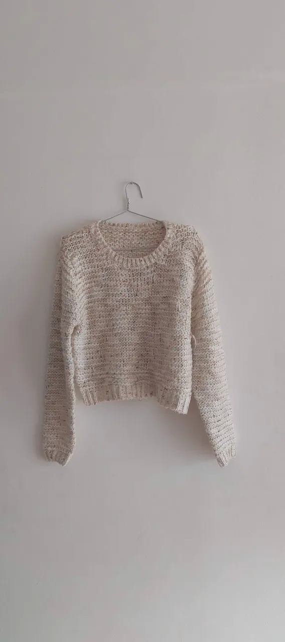 Sweater tejido crop, con detalles de hilos en diferentes tonos que le dan un toque único. Ideal para un look canchero y moderno.