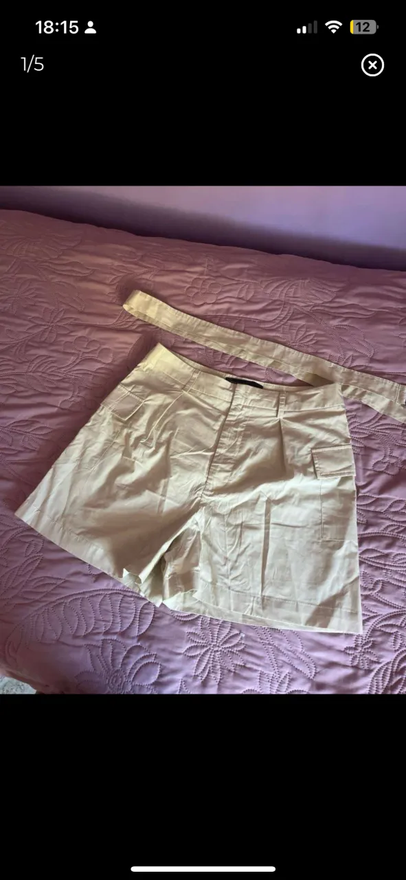 Shorts color crudo con cinturón de tela a tono. Posee bolsillos cargo en los laterales.