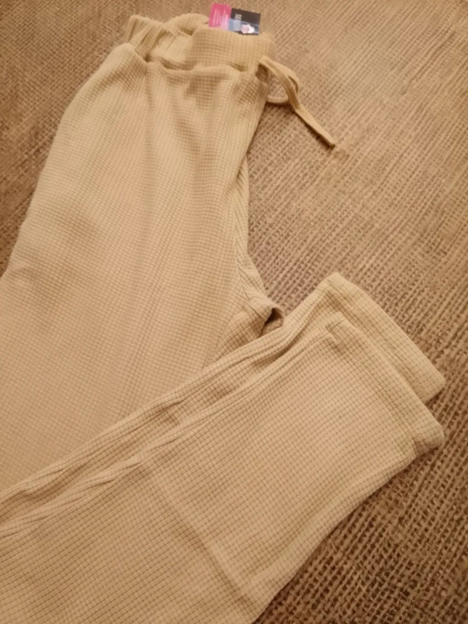 Pantalón de tela tipo waffle con cordón en la cintura.