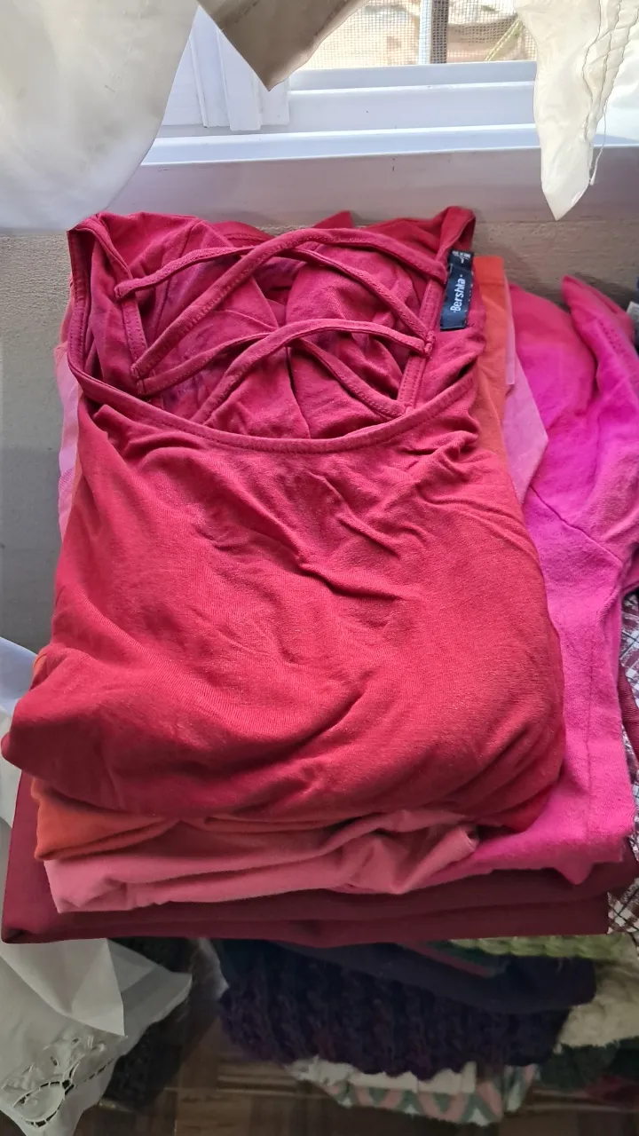 lote 5 Remeras manga corta y musculosa de color rojo rosa intenso. Ideal para un look casual y moderno.