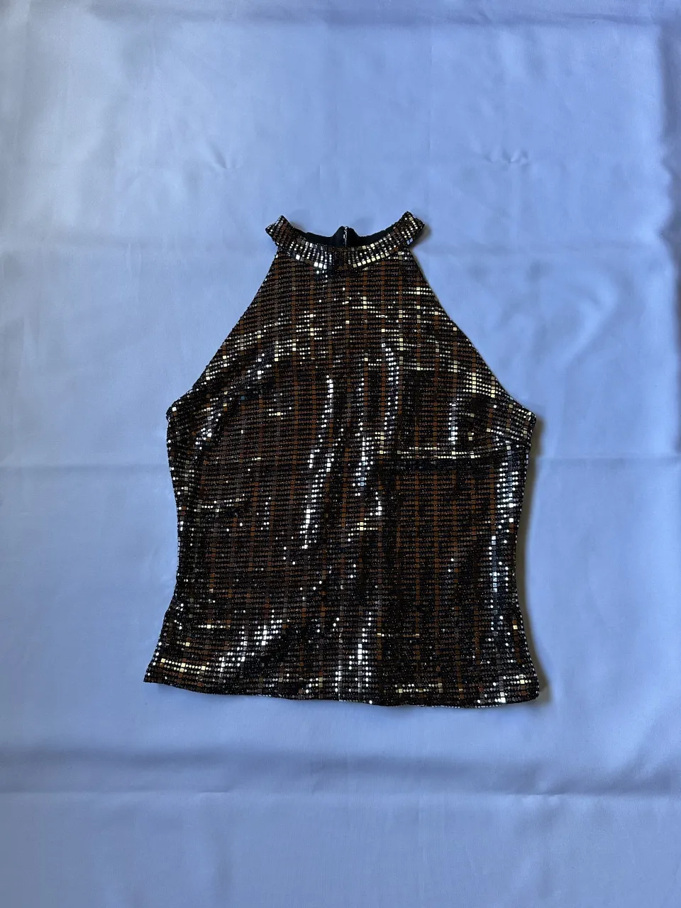 Top con lentejuelas y cuello halter. Espalda con recorte.