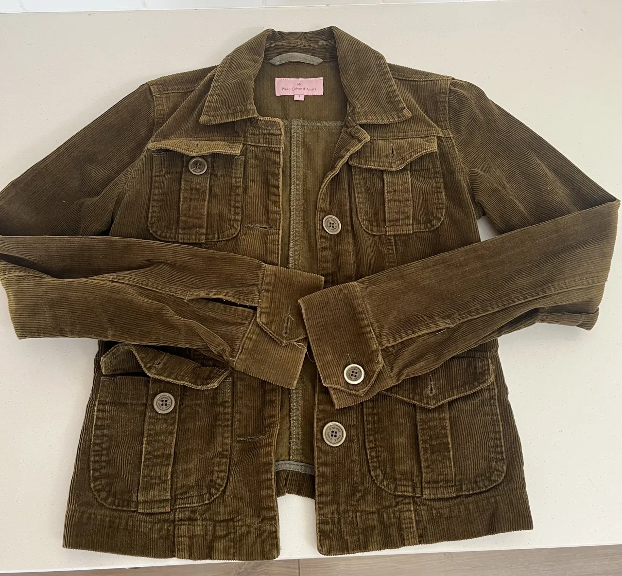 Chaqueta de pana color marrón, estilo safari, con múltiples bolsillos y botones. Ideal para un look casual y canchero.