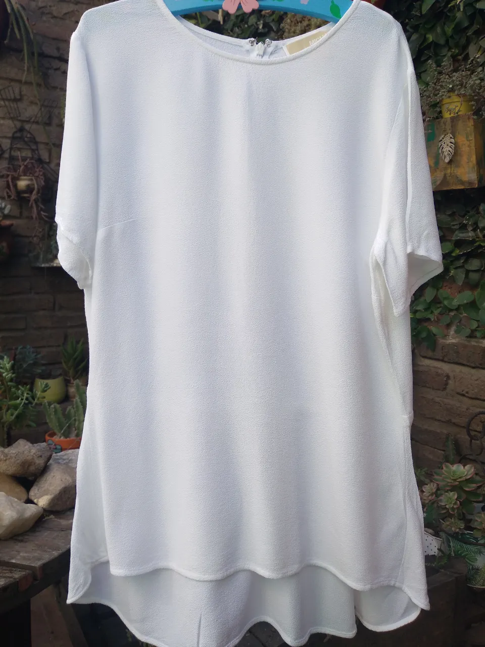 Blusa blanca de Michael Kors, con mangas cortas y un diseño elegante y suelto. Perfecta para un look casual o para la oficina.