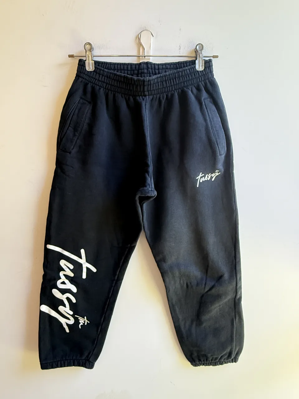 Pantalón de jogging negro con logo blanco estampado en la pierna izquierda y en la parte delantera derecha. Cintura elastizada con cordón.