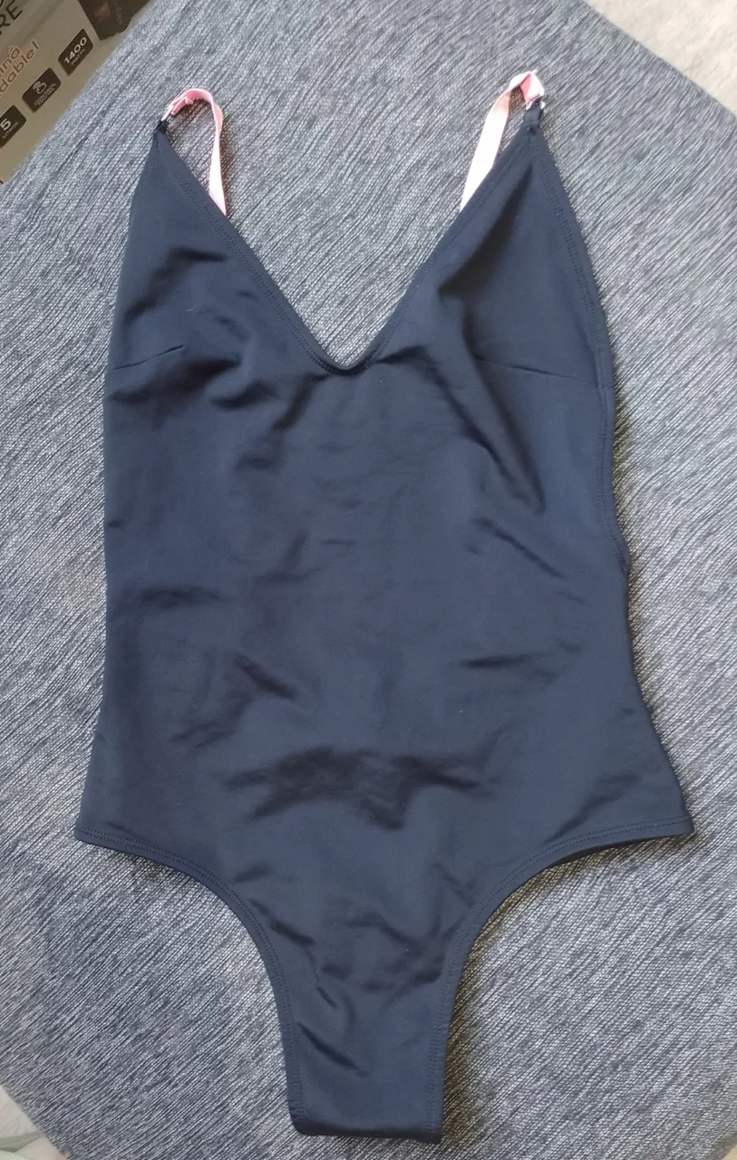 Enteriza negra con breteles finos en rosa. Ideal para disfrutar del sol y el mar.