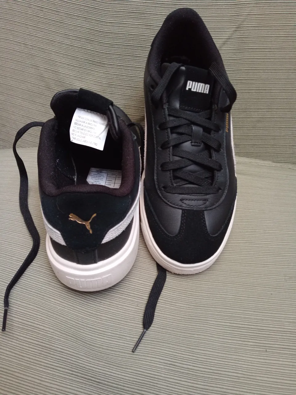 Zapatillas urbanas Puma negras. Su diseño clásico y cómodo las hace perfectas para cualquier ocasión. Recancheras. dos puestas por talle grande