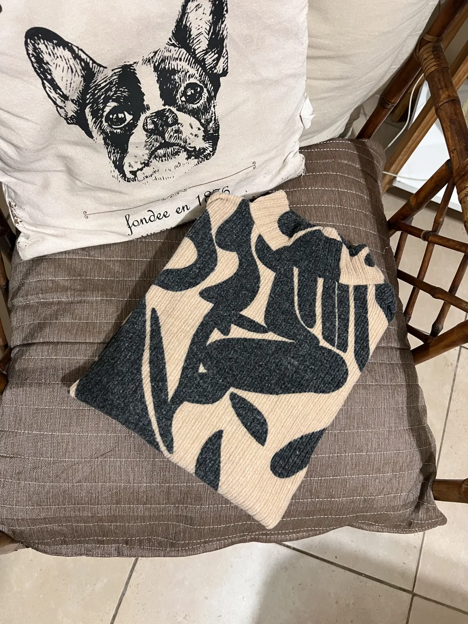 Remera manga larga con cuello alto y estampa abstracta en tonos crudo y gris. Un básico con un toque moderno para tu día a día.