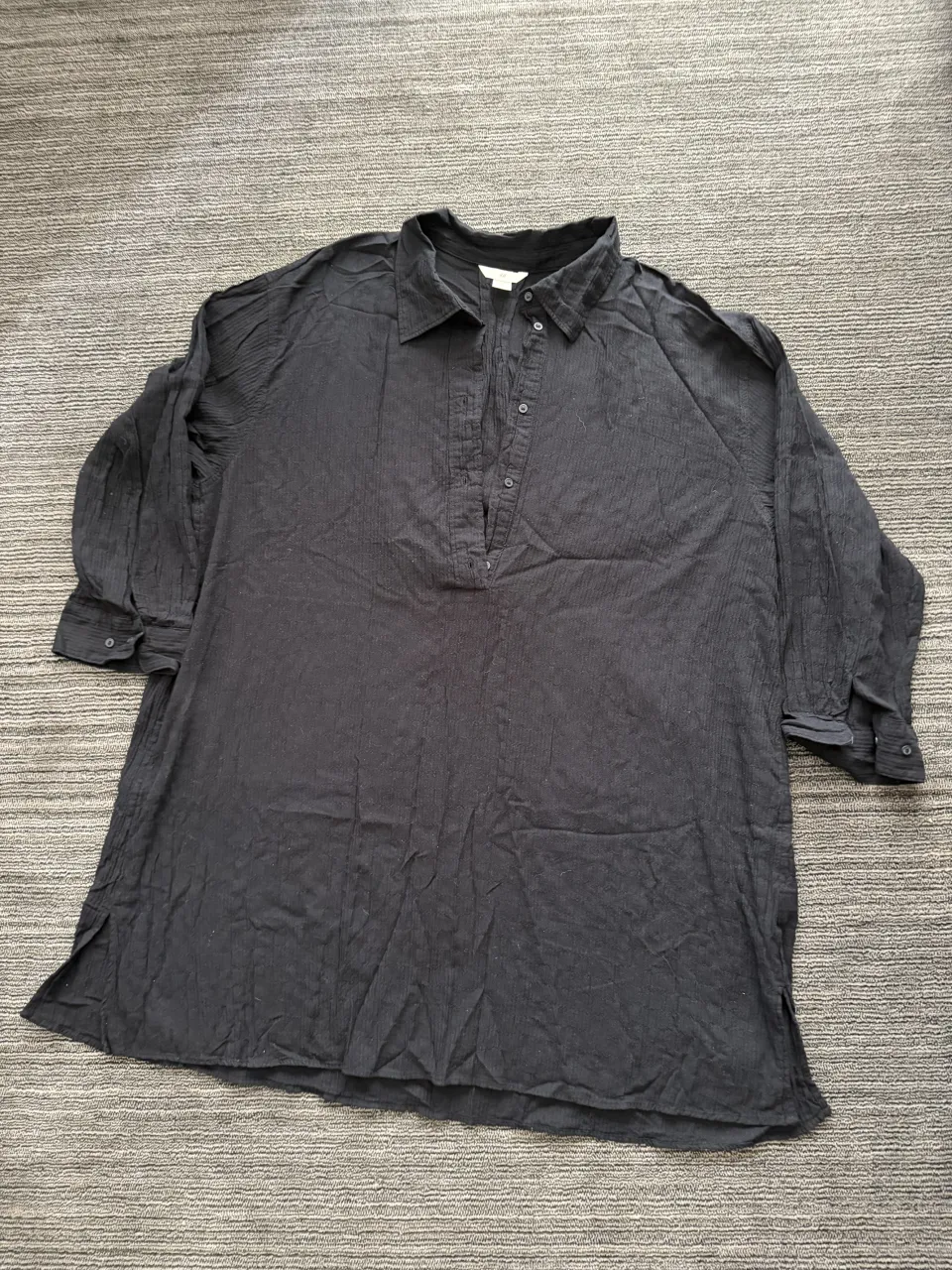 Camisa negra de lino con botones al frente y mangas largas. Ideal para un look casual y cómodo. puede ser usado como salida de baño oversized!